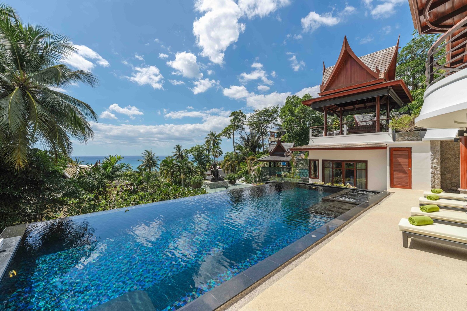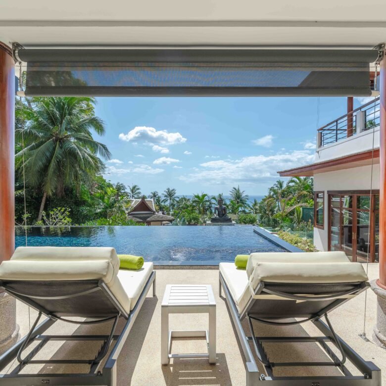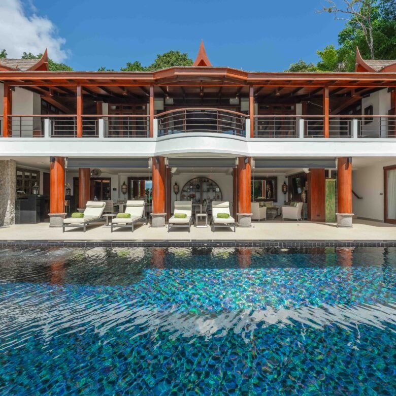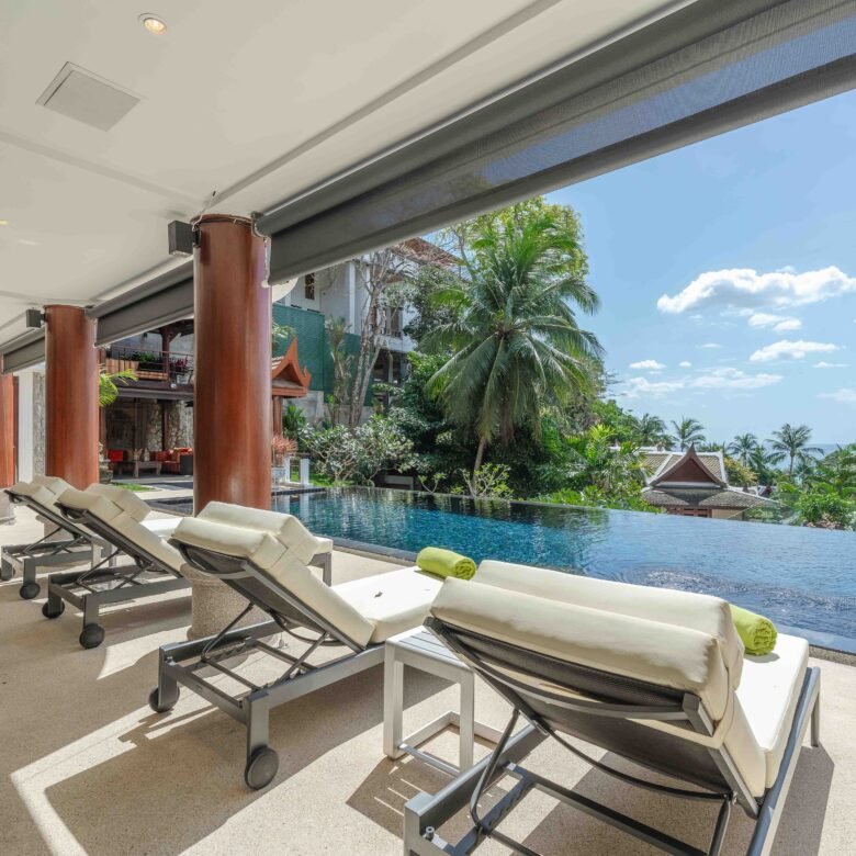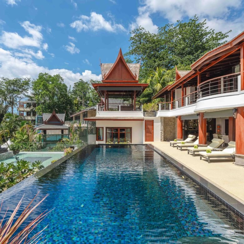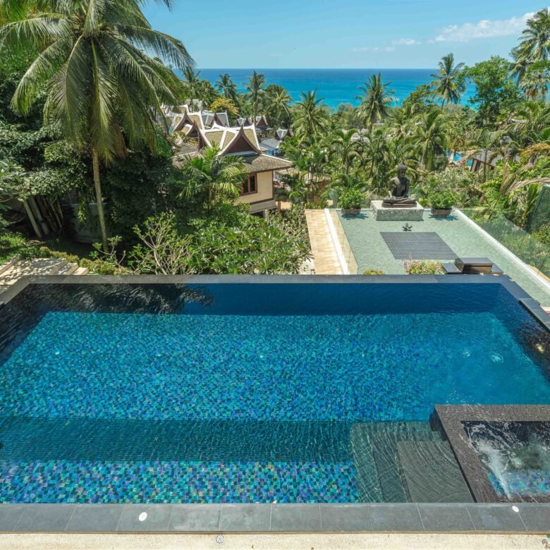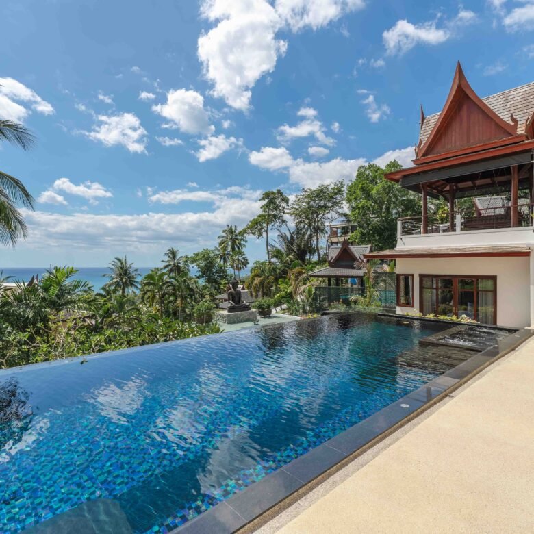 Escape to an exquisite sanctuary of tropical luxury at this stunning Thai-style villa, perfectly positioned to capture breathtaking sea views over Surin Beach. Designed for ultimate relaxation, this residence features a magnificent infinity pool framed by lush palms, creating a serene and private paradise. Expansive lounge areas and sophisticated interiors offer the perfect blend of comfort and elegance.