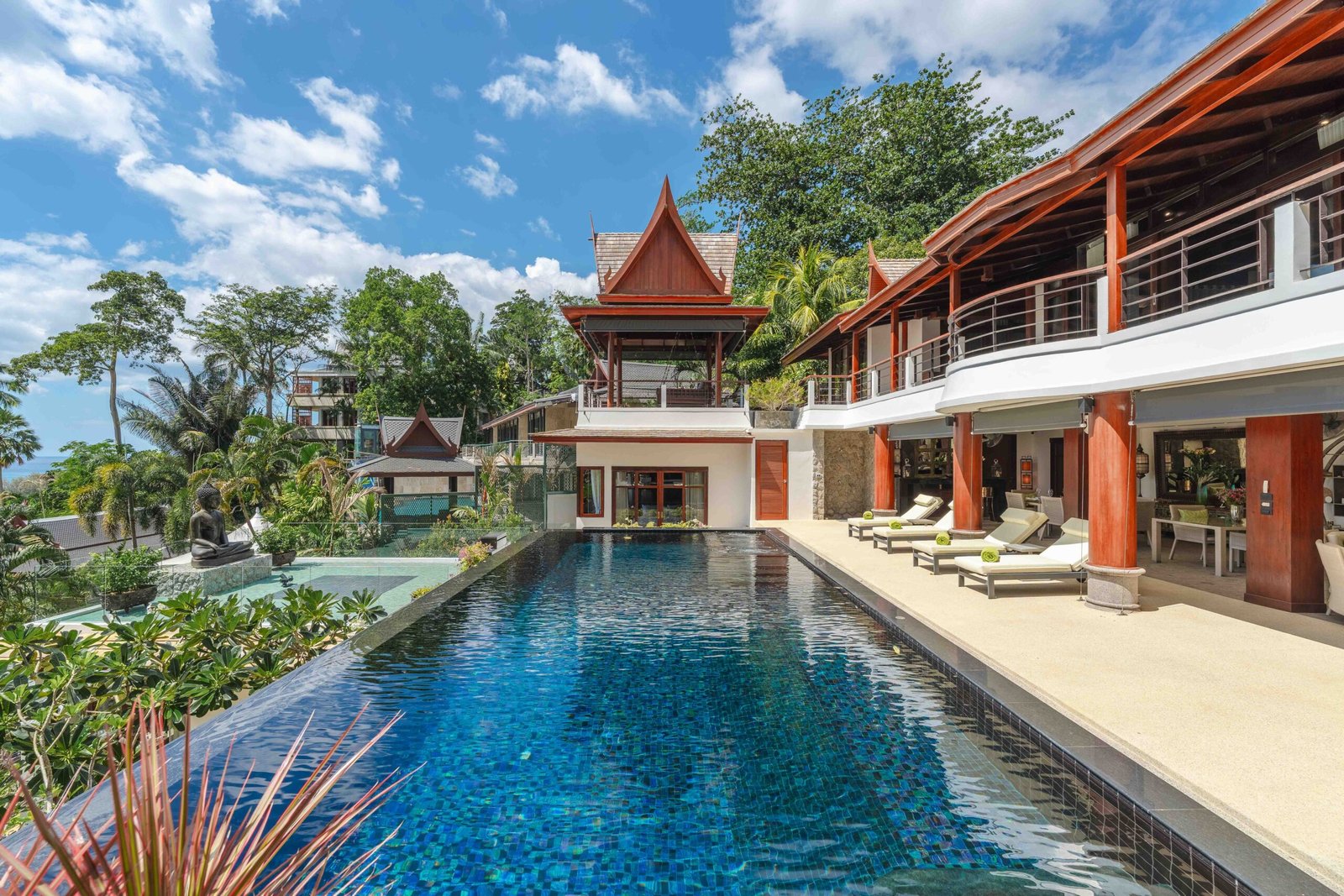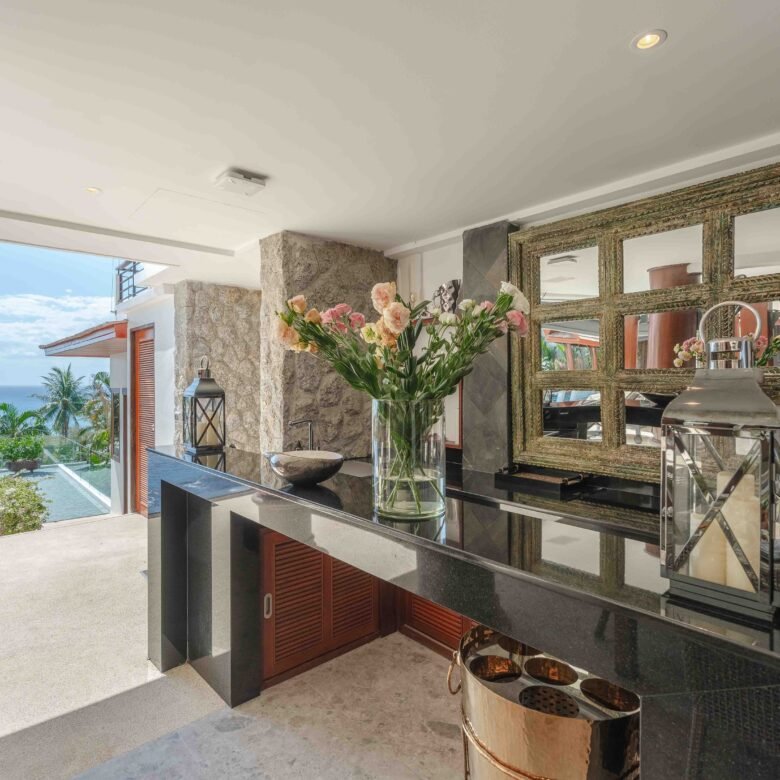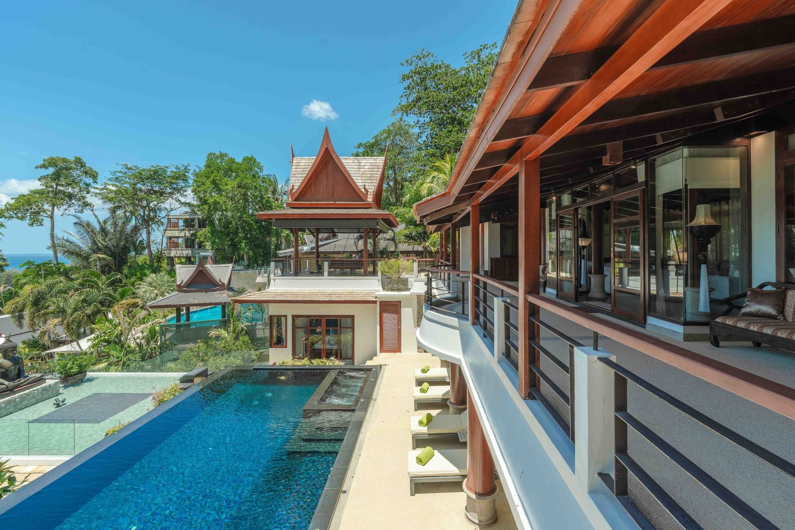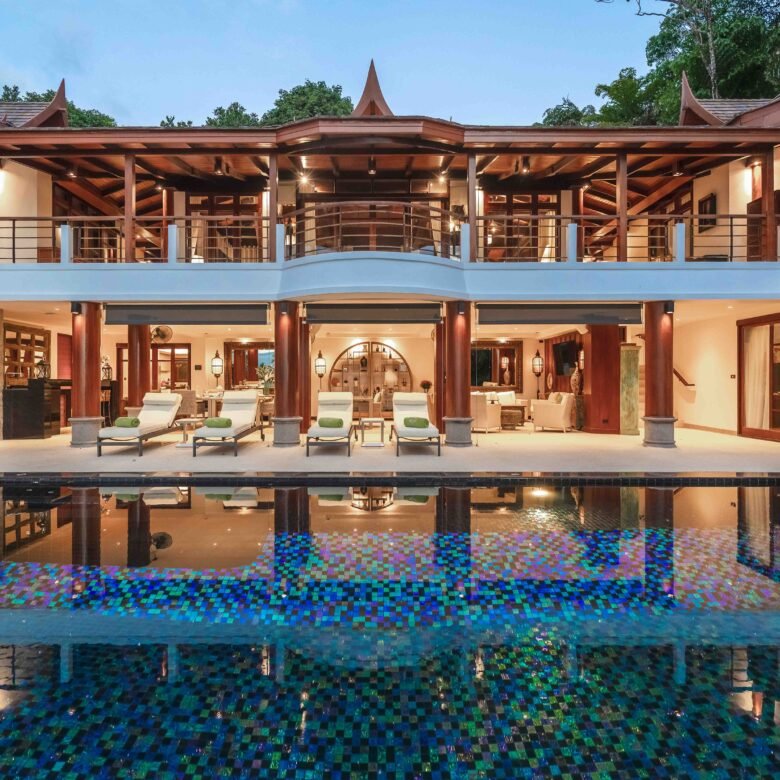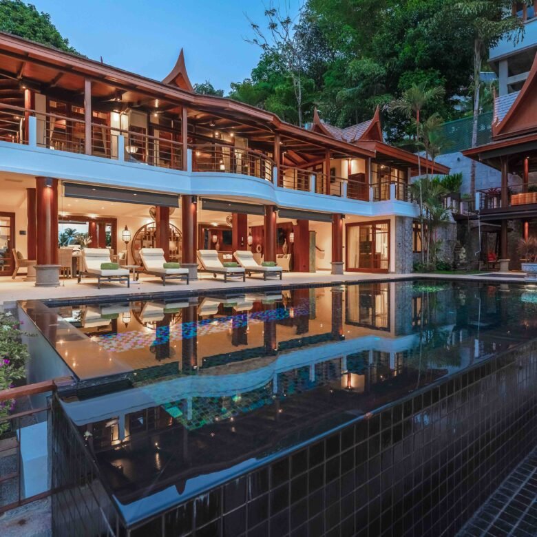 Escape to an exquisite sanctuary of tropical luxury at this stunning Thai-style villa, perfectly positioned to capture breathtaking sea views over Surin Beach. Designed for ultimate relaxation, this residence features a magnificent infinity pool framed by lush palms, creating a serene and private paradise. Expansive lounge areas and sophisticated interiors offer the perfect blend of comfort and elegance.