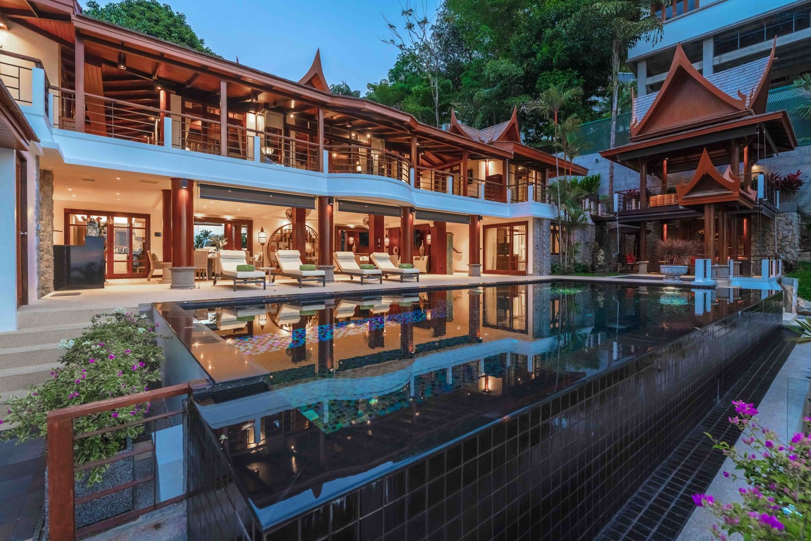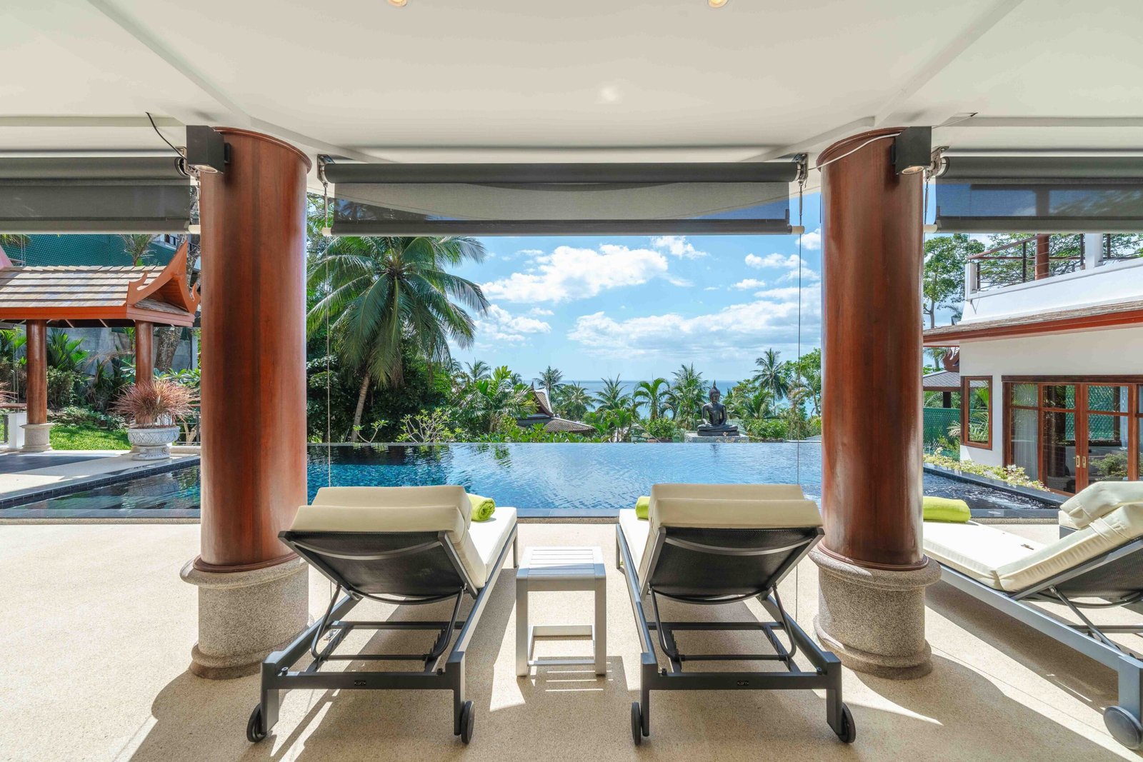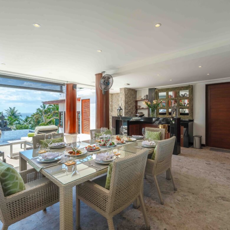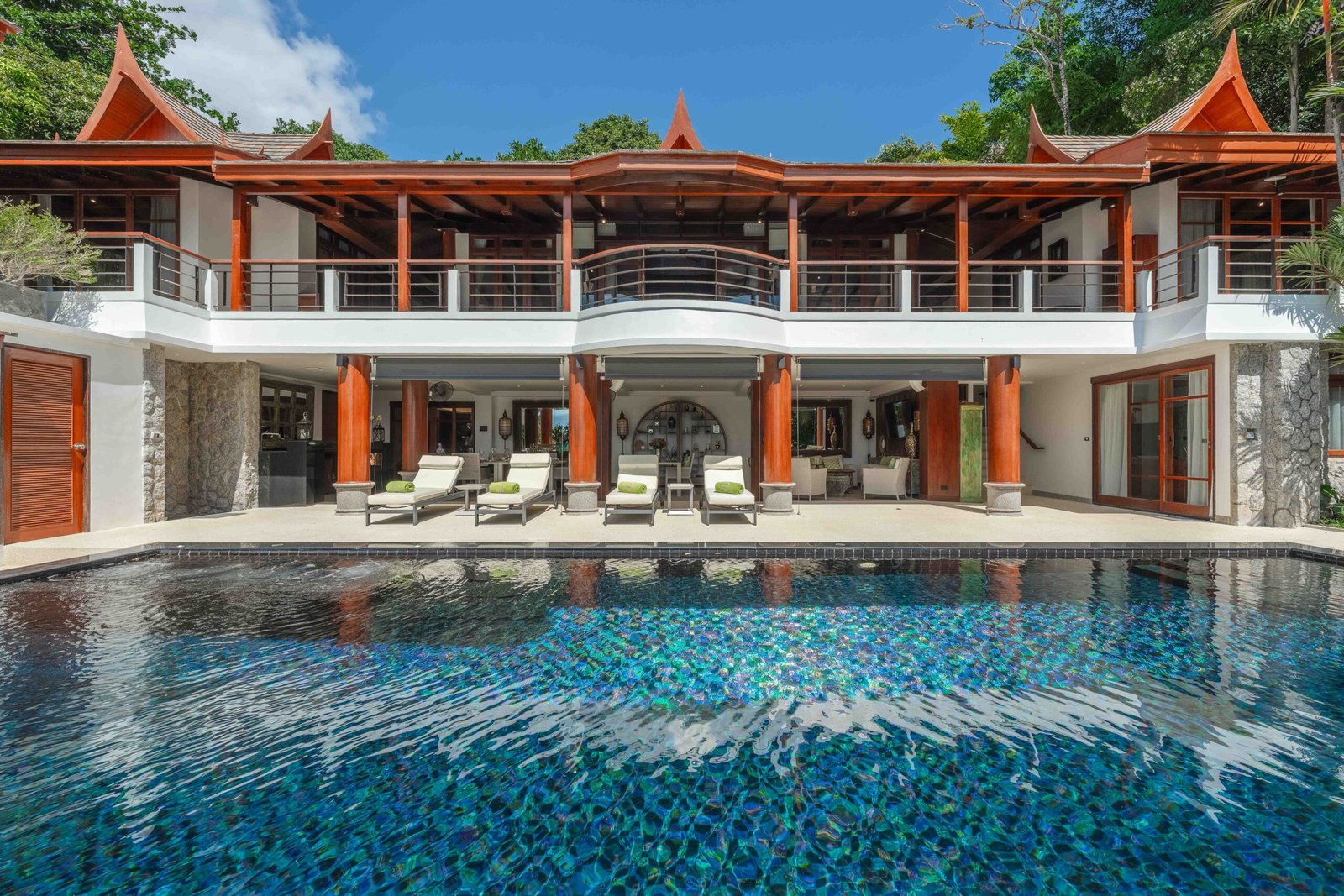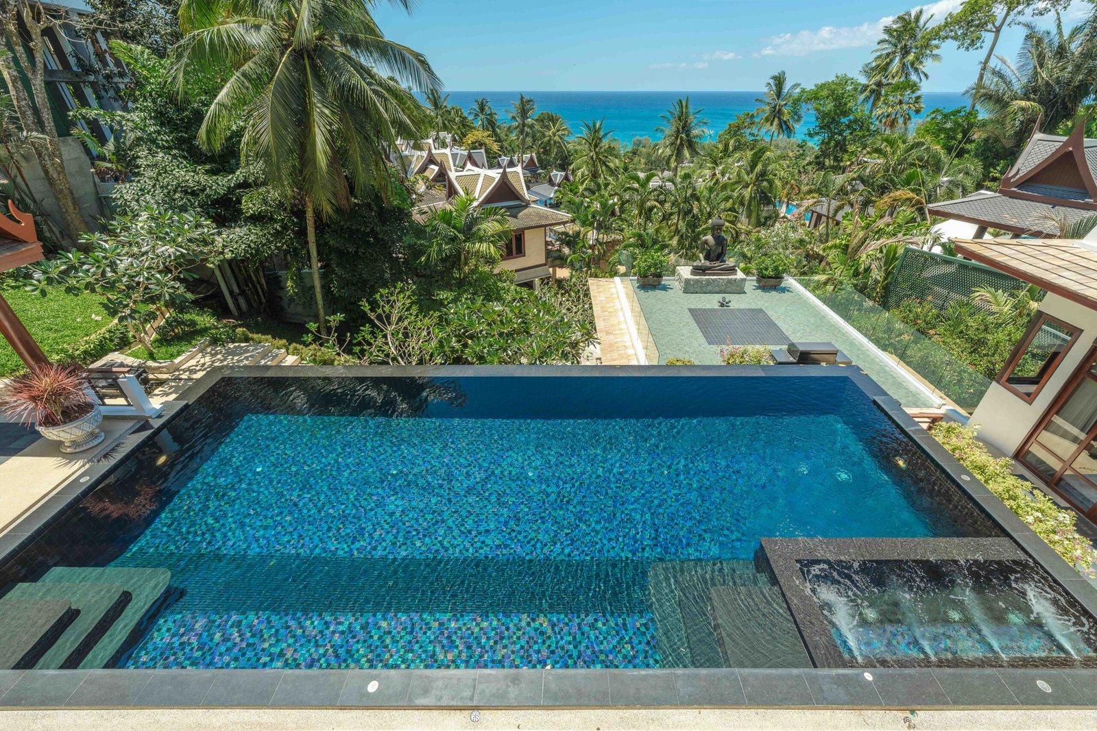 Escape to an exquisite sanctuary of tropical luxury at this stunning Thai-style villa, perfectly positioned to capture breathtaking sea views over Surin Beach. Designed for ultimate relaxation, this residence features a magnificent infinity pool framed by lush palms, creating a serene and private paradise. Expansive lounge areas and sophisticated interiors offer the perfect blend of comfort and elegance.