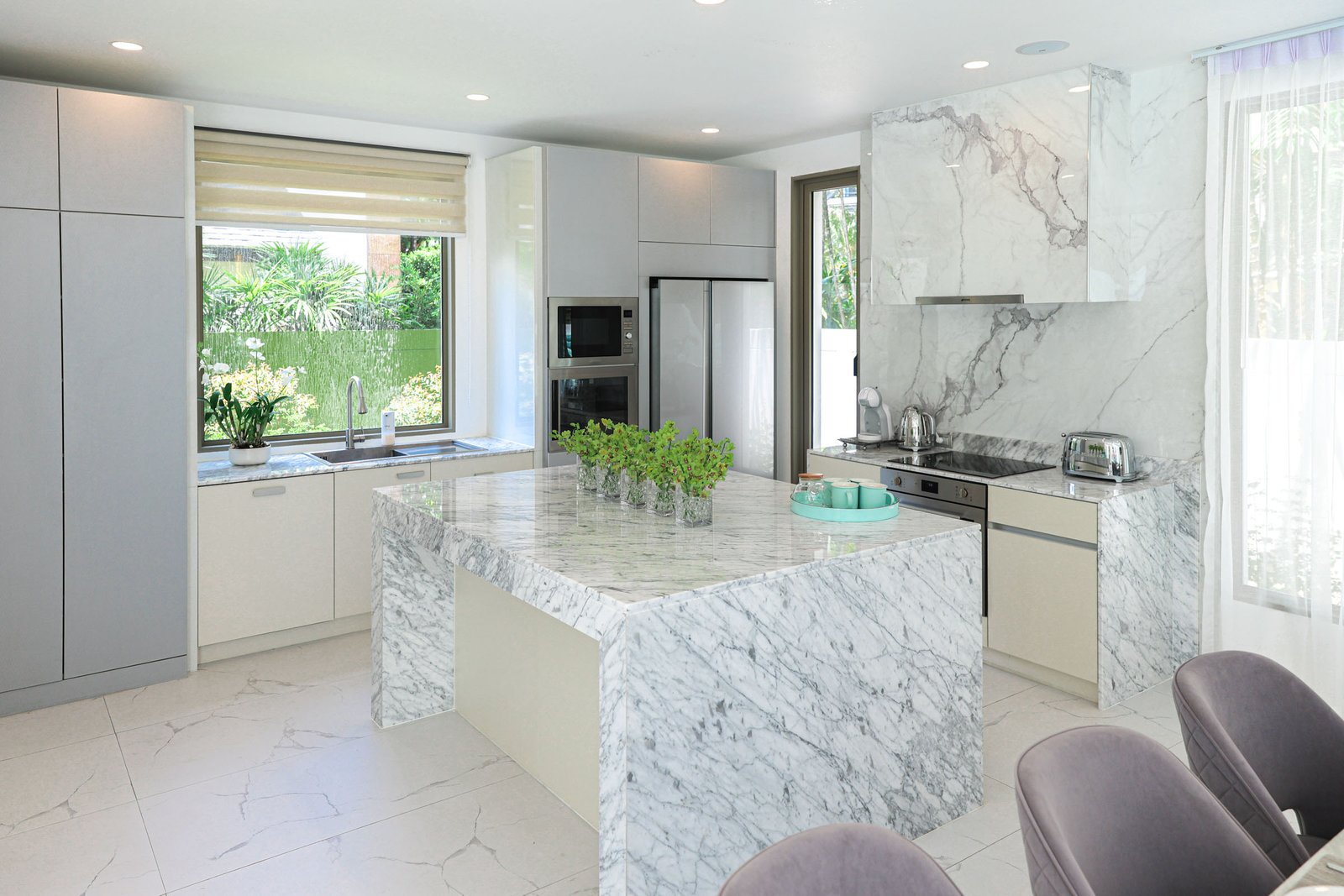 Set on a substantial 650 sqm land plot, the property boasts 450 sqm of beautifully designed living space, created to harmonize with its tropical surroundings. Each of the four spacious bedrooms is paired with its own private bathroom, offering a personal sanctuary for every resident. The generous layout provides ample room for both relaxation and entertaining, seamlessly blending indoor comfort with outdoor tranquility.
